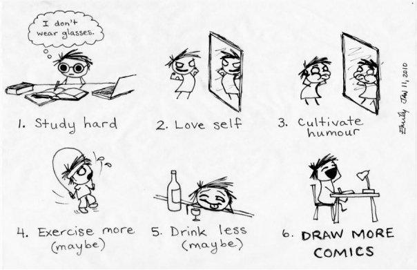 the art on this one is my favourite, just because it has these nice clean lines and the details on the hair (i guess you pencilled it and then went over it on pen and then scanned it in? lot of work, but I like it a lot) , I also crack up whenever I see the first panel, the glasses, the giant pen, the little details like the lap top.